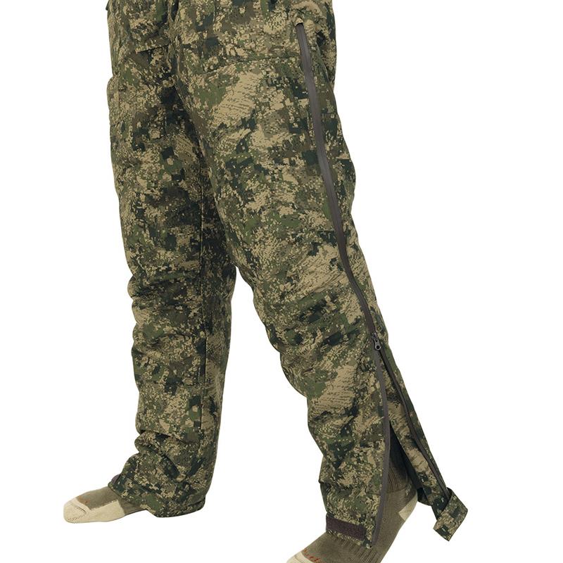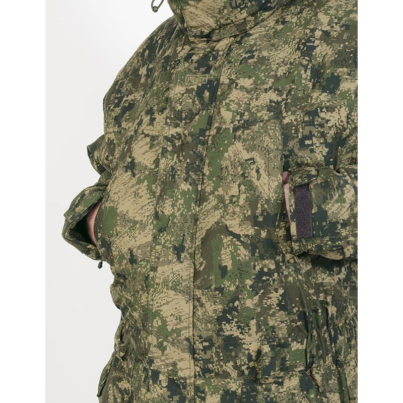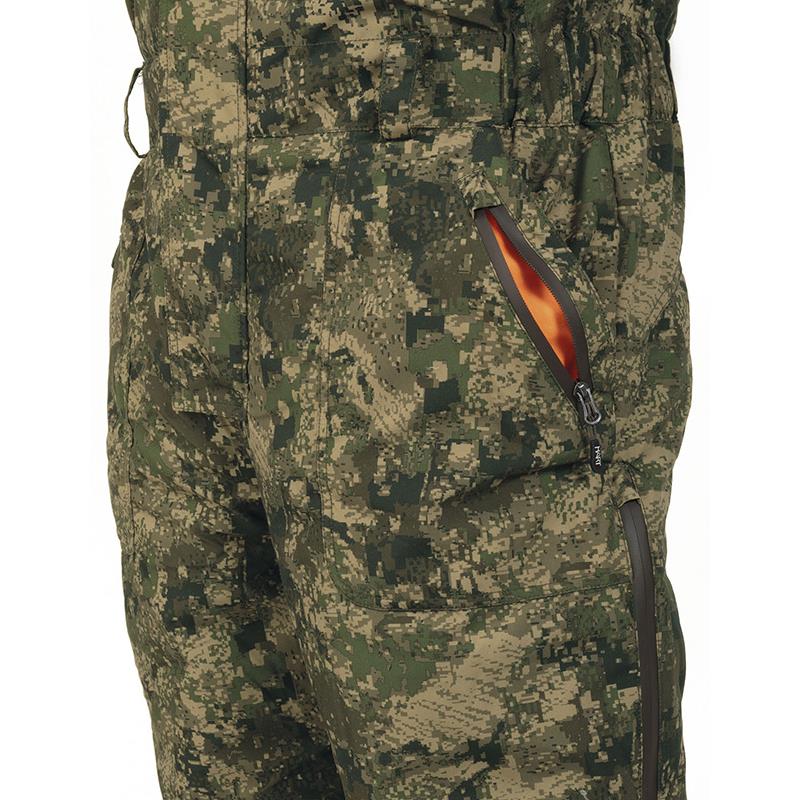 Equipped with 2 large cargo pockets at the front with overlapping pockets with waterproof zip closure. Chest hand-warmer pockets lined with fleece and a zip closure. A zipped internal (document) pocket. Elastic waistband with pads to possibly add a belt (optional), for better adjustment and greater comfort. Removable hood. Padded lining and various adjustment options. Lining made of different fabrics (lightweight nylon or more resistant fabric), for optimal insulation, easy putting on and greater comfort. Adjustable wrists with Velcro and removable lycra cuffs, for greater protection against the cold. Slits along the legs with waterproof zip closures. Bottom adjustable by Velcro. High waterproofing (10,000 mm) and breathability (10,000 g./m2).