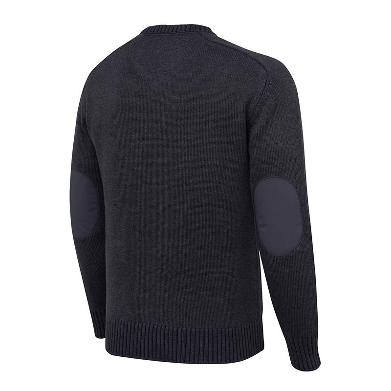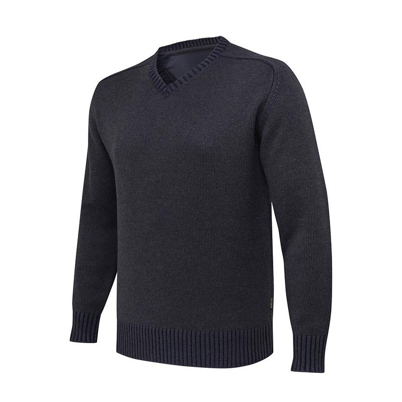 V-neck Kent sweater for men, in wool blend. The wool provides warmth while the nylon patches on the shoulders and elbows extend the lifespan. The nylon patches are water-resistant due to DWR - Durable Water Repellent treatment. Antibacterial treatment to reduce odor formation.