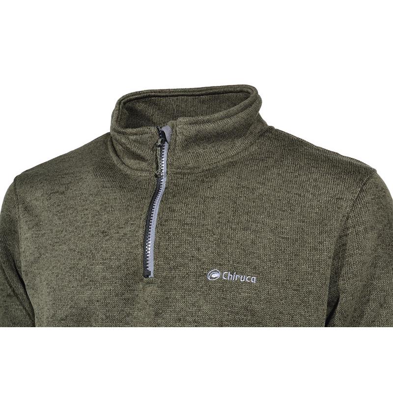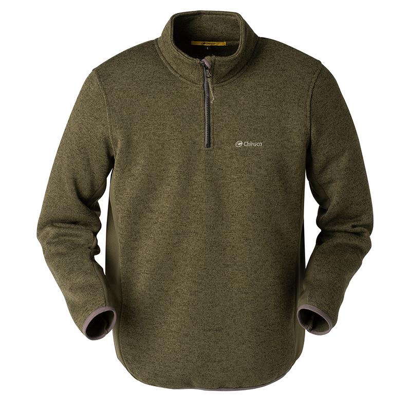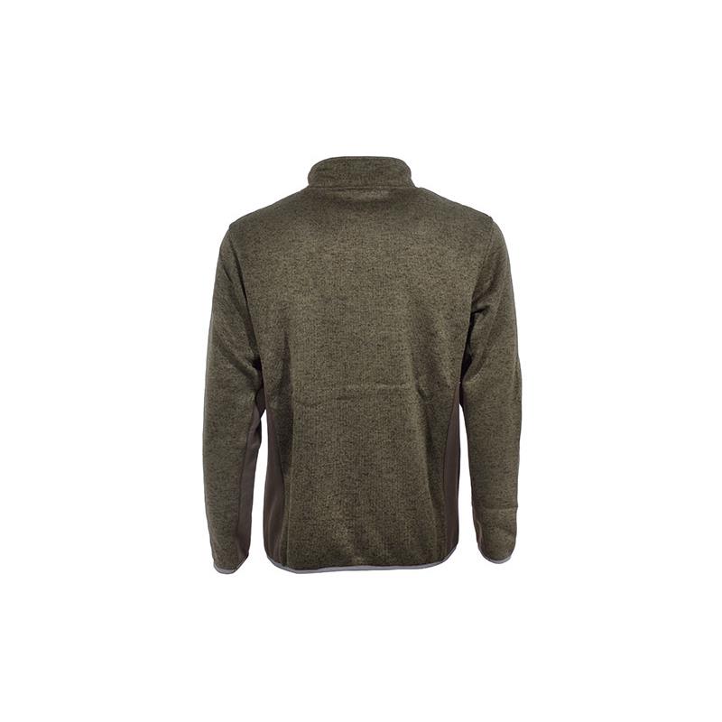 Long-sleeved mottled pullover 100% polyester with anti-pilling treatment.