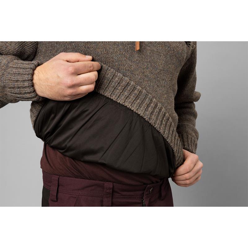 The Annaboda 2.0 HSP sweater is 100 % wool, which not only keeps you very warm but is also breathable and allows it to naturally regulate body temperature. Wool also has the advantage of retaining its insulating properties even when it is damp or completely wet. Thanks to its Härkila Storm Pro HSP® windproof membrane, the Annaboda 2.0 sweater blocks cold wind and can therefore serve as a jacket on many occasions. In addition, this sweater features a warm trucker collar that you can open to cool down. The Annaboda 2.0 sweater has a zipped pocket on the left chest to slip your mobile phone or other items into, as well as elbow reinforcements to accompany you for many years without wearing out. It has ribbed edges at the cuffs and hem to stay in place and prevent cold air from entering.