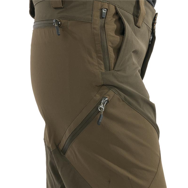 • 6-pocket construction: 2 at the front (with a zipped micro-pocket inside), 2 side cargo pockets and 1 zipped back pocket. • The fabric is treated with Tanatex® to protect you from ticks, flies, mosquitoes and other insects.