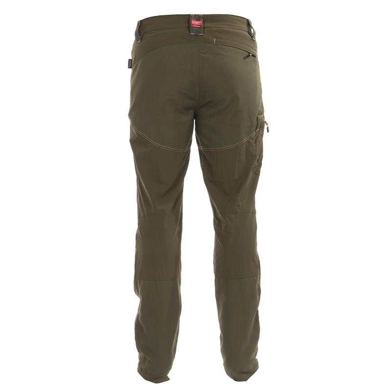 Rip-stop fabric, insect repellent, lightweight, breathable, stretchable and durable, with reinforced nylon fabric on the front of the legs and at the back.