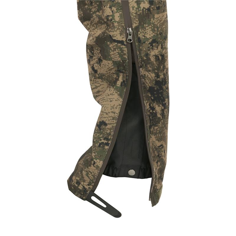 • Cordura parts on the inside of the ankles protect the pants from boots. • YKK Aquaguard zippers on the pockets and SBS waterproof vislon zippers on the sides. • Articulated knees and patterns for greater range of motion and a comfortable fit with the lower layers. • OSMOTECH PLUS waterproof membrane and sealed seams. • High waterproofness (10000mm) and breathability (10000 gr/m2). • Our PIXEL FOREST camouflage breaks the hunter's silhouette with the background and makes it a continuum with the surrounding nature.