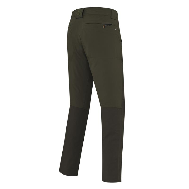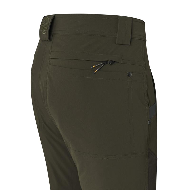 Features: • Elastic waist • YKK zipper and button closure • Belt loops • Pretreated knees • Side pockets with rubber reinforcement for attaching knife • Back pocket with YKK zipper • Embroidered Beretta logo on the back • Fit: straight