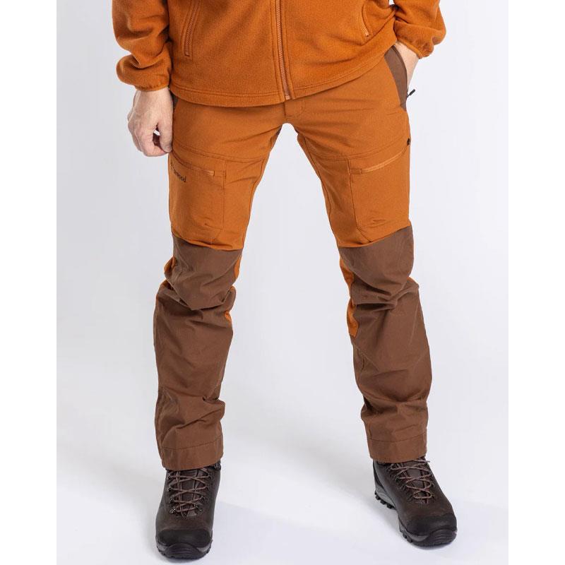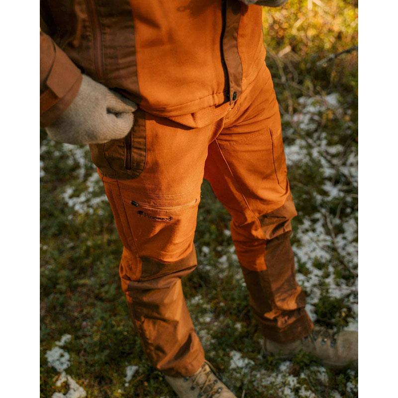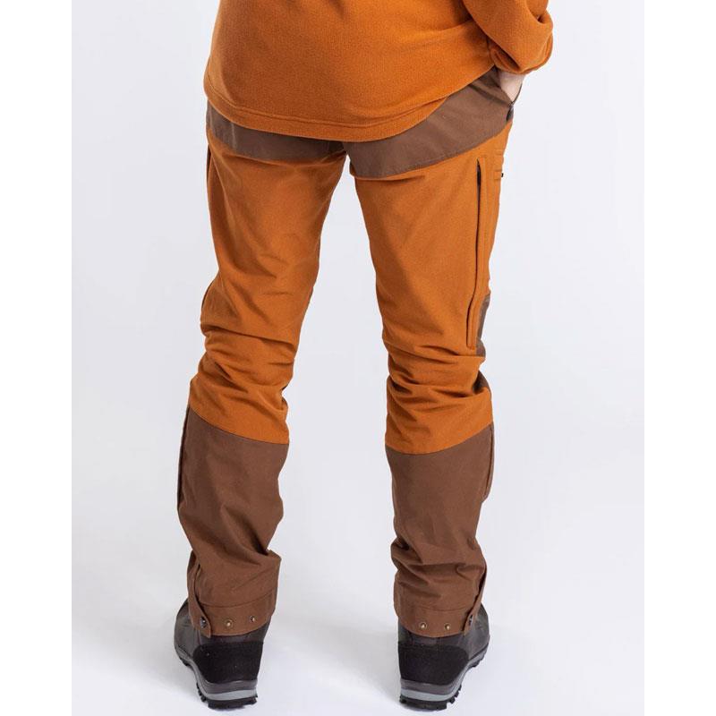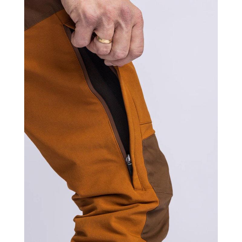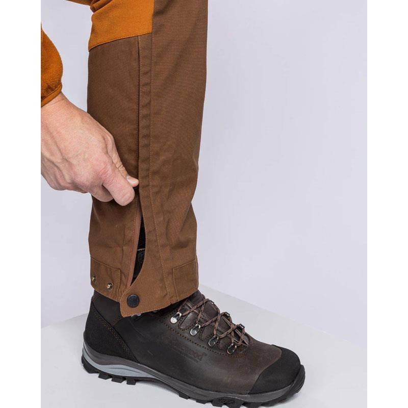 Versatile and sturdy trousers, ideal for hiking, daily wear and hunting. Waxed surface and sealed seams for improved water resistance. Ventilation zips on both sides. Spacious zippered pockets. Waist adjustable by scratch. Adjustable boot cuffs and hook.