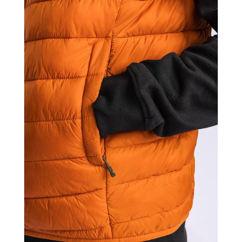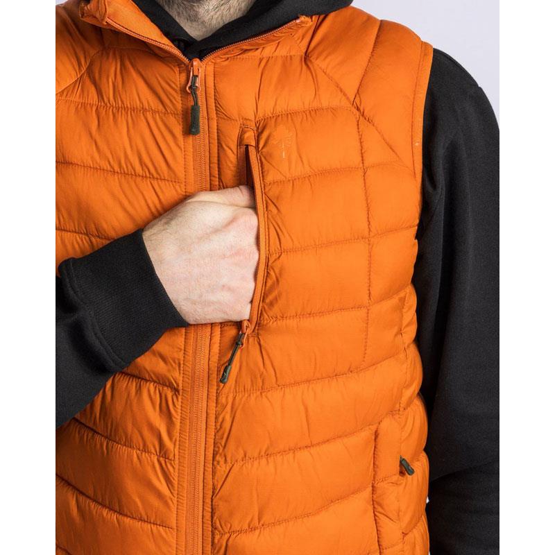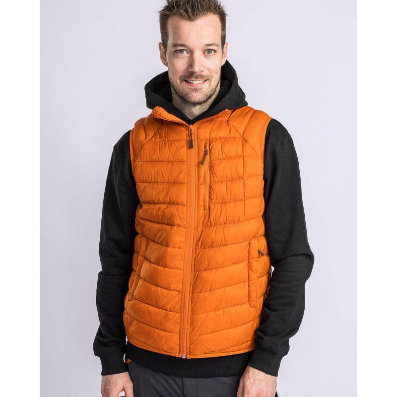 The Abisko Insulation men's vest is a very light and warm vest, filled with polyester from recycled PET bottles. This filling, with a fill power of 550+, is blown into the channels like down, but is an ecological alternative offering the same thermal properties. Soft, windproof and slightly water-repellent, this vest features two zippered handwarmer pockets and a zippered chest pocket. This men's vest can be used either as an outer layer or as an insulating intermediate layer under a jacket.