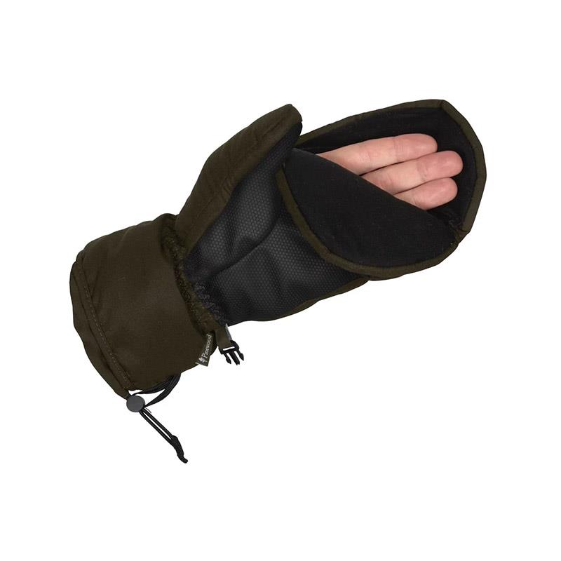 The Pinewood® Hunters Pro glove is our smartest innovation to date in gloves and mittens. It's a warm, padded glove with water repellent properties, making it suitable for winter weather. The glove was equipped with a magnetic opening at the top of the fingers, which allows you to easily use your fingers without having to remove the glove. This way, you can quickly open the glove to put your finger on the trigger when the prey is in sight, without having to waste precious seconds taking off your gloves. Fast and smooth! When the magnets are closed, it's completely sealed, and you don't need to worry about cold and wind. Magnets are also handy for keeping gloves together so that you can find both quickly in your bag. The wrist can be adjusted with cords and straps for a tighter fit. The palm is rubberized for a better grip. Can advantageously be used in very cold weather with a thin liner glove.