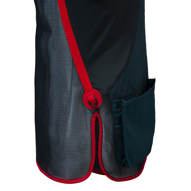 Uniform Pro W 20.20 Micro shooting vest for women in breathable mesh and elastic cotton with a microsuede shoulder pad and expandable front pockets. The vest features a microsuede shoulder pad with laser-perforated details for greater breathability. The body is almost completely covered with a breathable, elastic 3D mesh. Elastic side panels ensure fit and freedom of movement. The front pockets are expandable and have hidden snap buttons. The comfort cotton back panel can be customized with embroidery or prints.