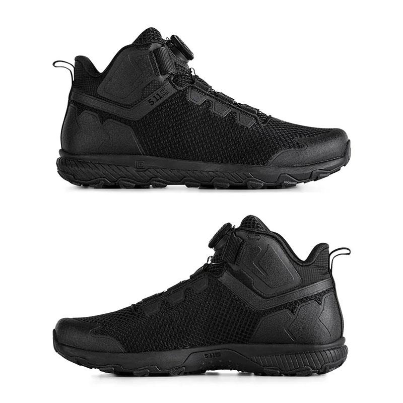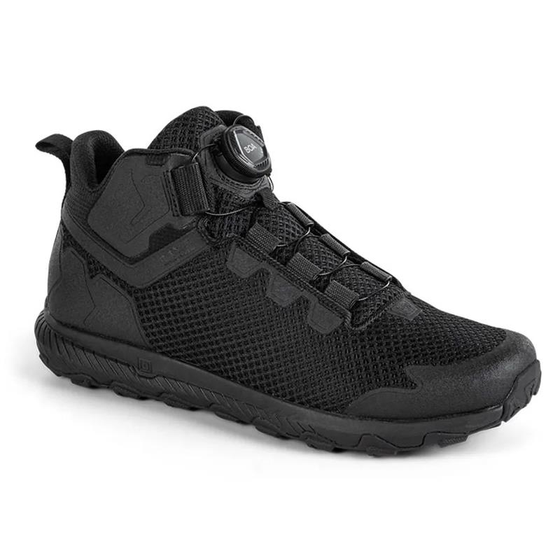 Features: • All-Terrain Shoe • Adjustable BOA® Fit lacing system • Welded TPU support structure on the upper • Abrasion resistant mesh with reinforcements • TPU toe protection • Ortholite inner sole • High rebound EVA Echo Lite midsole • Rubber outsole with multi-directional cleats (Sure-Grip) • Removable 5.11 A.T.L.A.S support plate (heavy load) • Mesh upper with a breathable mesh structure • Made from Nylon / Polyester and TPU • Low Cut • Regular width (R) • US sizes • A/T collection (A.T.L.A.S Technology) • Colour: Black (019)