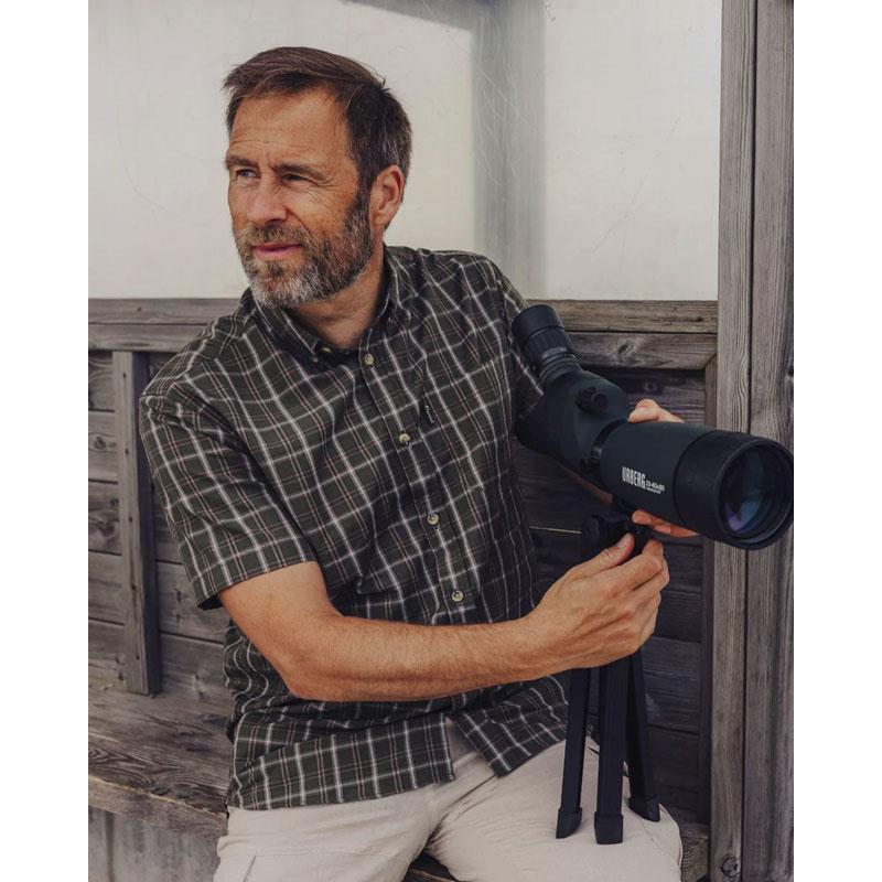 Men's short-sleeved shirt with a timeless style and button-down collar. It is buttoned at the front and features a handy open chest pocket. Easy to care for and virtually wrinkle-free, this shirt combines classic design with modern checks and a light, breathable fabric. Ideal for work, special occasions, or outdoor outings.