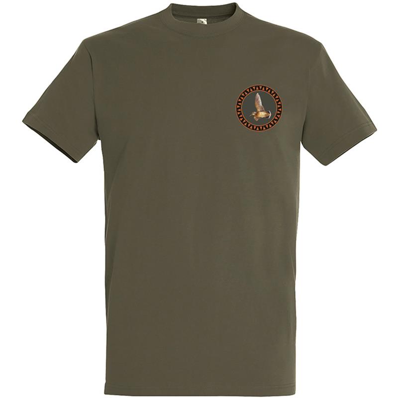 T-shirt 100% cotton heavy ringspun quality 190 gr ensuring good fabric stability • Double stitching • Neck tape on the collar • Short sleeves • Collar with ribbed elastane trim • Hunting frieze print on the chest (heart side)