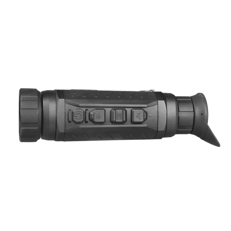 Features: • Detector type: Uncooled VOx 12 μm Focal Plane Array • Resolution: 384 × 288 • Refresh rate: 50 Hz • NETD: Less than 20 mK (25°C, F#=1.0) • Response wave band: 8 m to 14 m • Lens system: 25 millimetres; F1.0 • Field of view (HxV): 10.5 ° × 7.9 ° • Magnification: 2.5x - 20x • Digital zoom: 1x, 2x, 4x, 8x • Dioptric adjustment: -5 to +3 dpt • Detection range (6 foot object): 1,200 m • Monitor: 1024 x 768, 0.39 inch, OLED, 50 fps • FFC (Flat Field Correction): Automatic, manual, external correction • Palettes: Warm Black, Warm White, Warm Red, Fusion • High temperature spot tracking: Yes • Scene mode: Jungle, Reconnaissance • Distance measurement: Laser Rangefinder: up to 1,000 1 m, accuracy of ±XNUMX m • Laser wavelength: 905 nm • Laser safety class: Class 1 • Hotspot: Yes • Standby mode: Yes • Built-in storage: 64 GB EMMC • Video/audio recording: Yes • Image capture: Yes • PEP or “PIP”: Yes • Battery type: One 18650 rechargeable battery (removable) • Battery life: 4.5 hours continuous operation (@25°C, WiFi and LRF disabled) • Battery capacity display: Yes • External power5 VDC/2 A, USB Type-C interface Supports external power • Operating temperature: -30 °C to 55 °C (-22 °F to 131 °F) • Protection level: IP67 • Dimensions: 185 × 52 × 86 mm (7.3 × 2.0 × 3.4 in) • Weight (without batteries): 424 g (0.93 Ib)