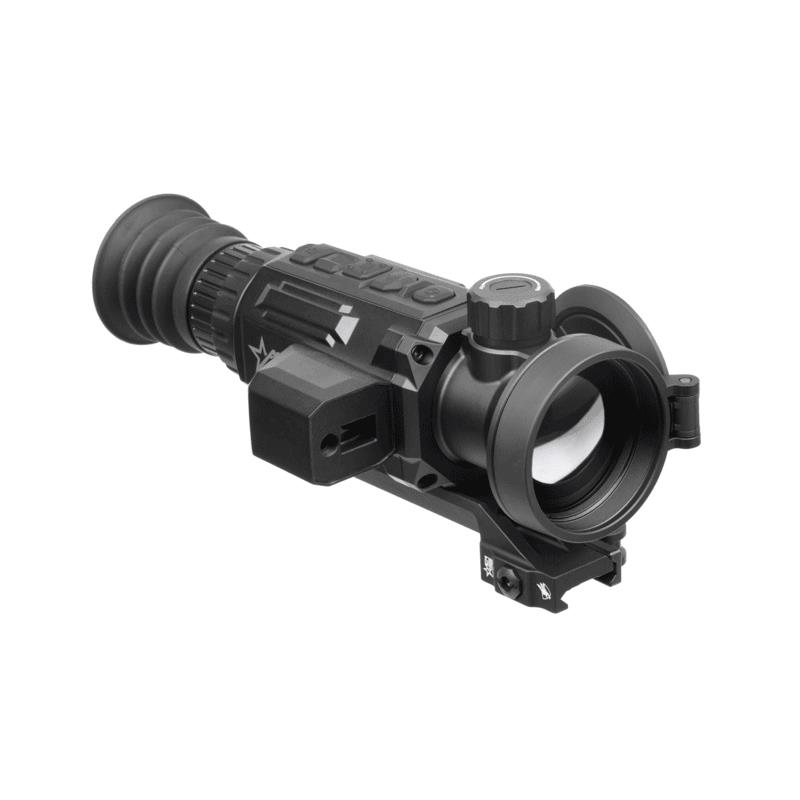 Features: Type of detector: Uncooled VOx 12 μm focal plan array Resolution: 640 × 512 Refresh rate: 50 Hz Response wave band: 8 m to 14 m NETD: Less than 20 mK (@25°C), F#=1.0 50 millimeter lens system; F1.0 Field of view (H×V): 8.8 ° × 7.0 ° Magnification: 2.5x - 20x Digital zoom: 1 ×, 2 ×, 4 ×, 8 × Detection range (6-foot object): 2,600 m/yd Eye Relief: 45 mm Exit pupil: 6 mm Diopter adjustment: -5 to +3 dpt Monitor 1024x768, 0.39 inches, OLED FFC (Flat Field Correction): Automatic, manual, external correction Palettes Black Warm, White Warm, Red Warm, Fusion Reticle 10 types, 4 colours, on/off Aiming grid adjustment: Digital control Laser rangefinder: Up to 1000 m, accuracy ±4 m Laser wavelength: 905 nm Laser safety class: Class 1 Tracking of high temperature spots: Yes Correction of defective pixels: Yes Hotspot WiFi: Yes Standby mode: Yes Picture-in-picture mode: Yes Burn prevention: Yes Built-in storage: 16GB EMMC Video/audio recording: Yes Image capture: Yes Record activated by shot (SAR): Yes Battery type: Four CR123A lithium batteries Battery run time (WiFi off): Over 6 hours External power supply: 5 VDC/2A, USB Type-C Operating temperature: -30 °C to 55 °C (-22 °F to 131 °F) Protection level: IP67 Max. Recoil: 1,000g / 0.4ms Dimensions (without support): 227 × 104 × 74 mm (8.9 × 4.1 × 2.9 in) Weight (without mount or battery): 0.66 kg (lb 1.45)