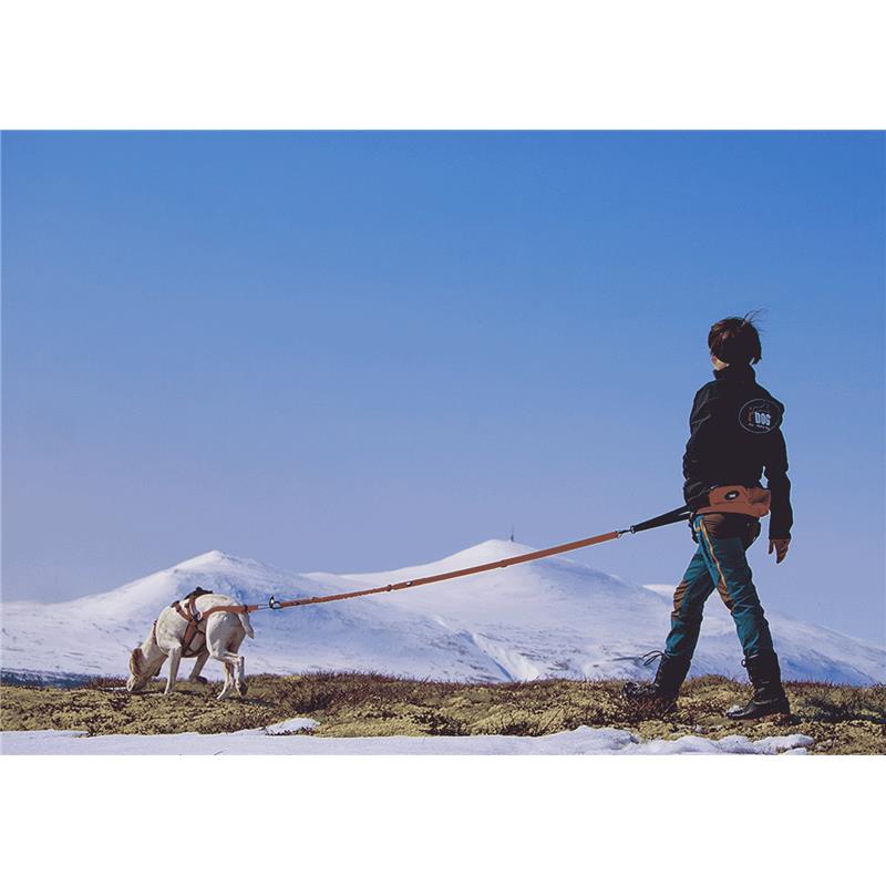 First of all, the COMFORT TREK leash is equipped with a dual shock-absorbing system. It allows you to control jolts when the dog runs thanks to two different types of springs. The elastic strap consists of a flat section 20 cm long (soft shock absorption) and a round section (firmer shock absorption). Two handles are integrated and allow adjustments according to needs and the type of use. Additionally, you can wear the leash over the shoulder or around the waist.