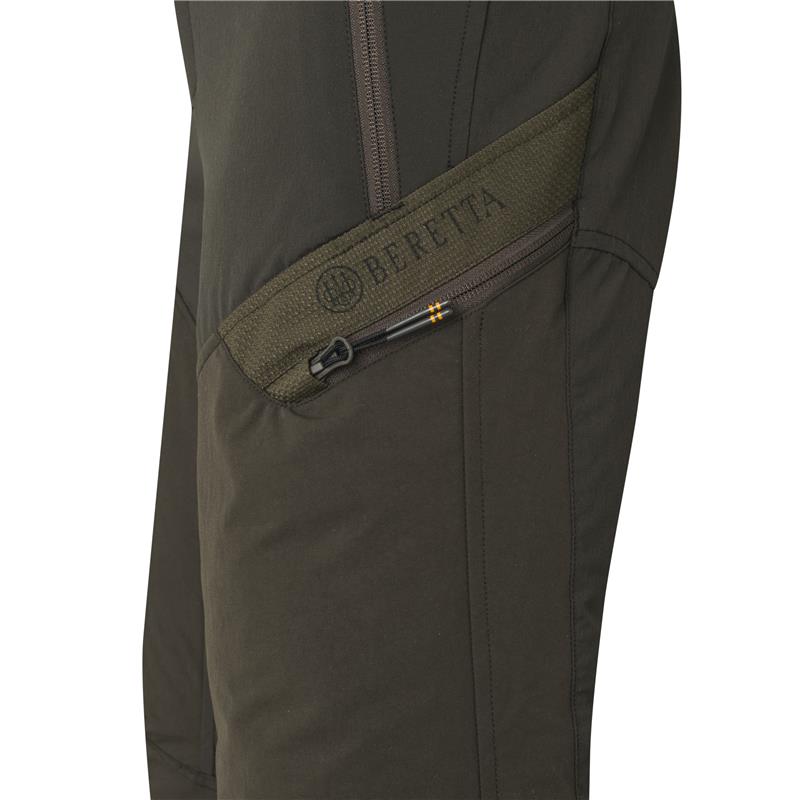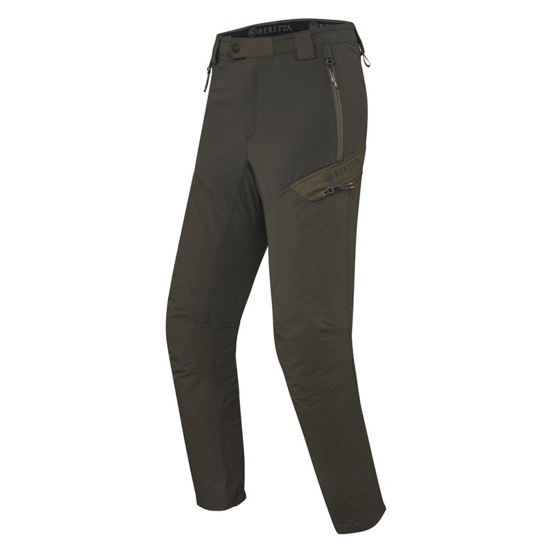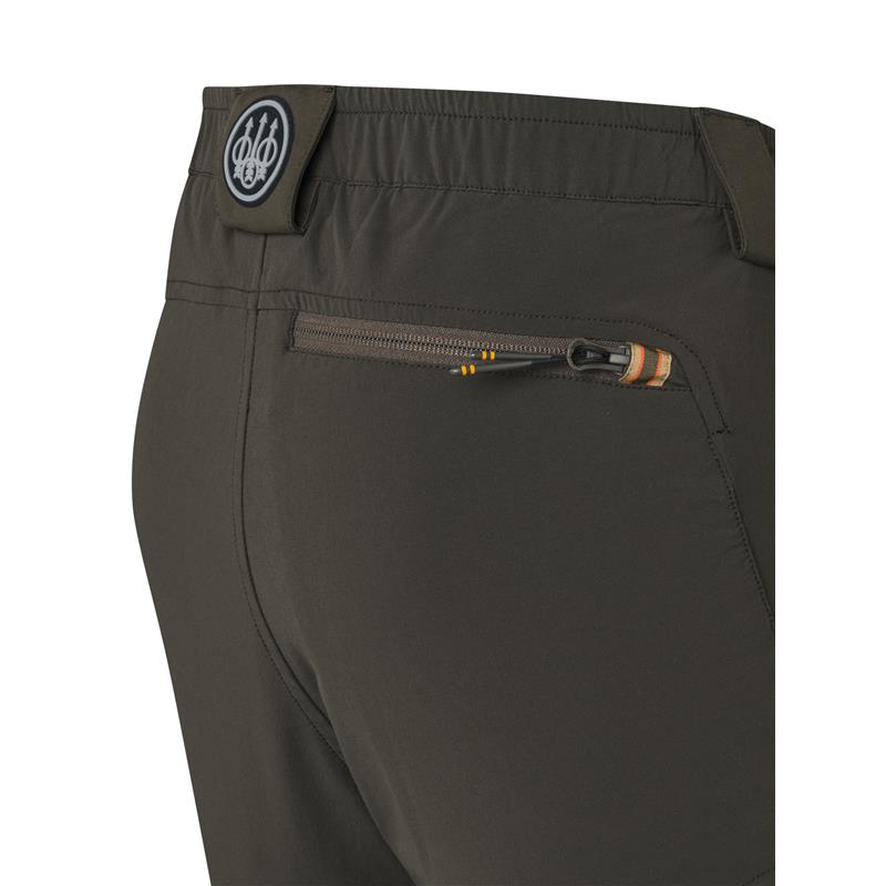 Features: • Elastic waistband • YKK zipper and snap buttons • Belt loops • Internal buttons for braces • Side pockets with YKK zipper • Front pocket on the left leg • Ventilation slits on the outside of the leg with YKK zipper • High lumbar support • Rear pocket with YKK zipper • Rubberised Beretta logo on the back • Fit: regular