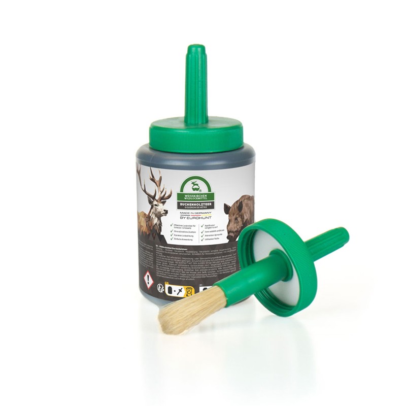 The Eurohunt vegetable tar is a 100% pure and natural beech tar, without additives or pheromones. The production process of this tar ensures great purity and superior quality, as it is boiled twice.