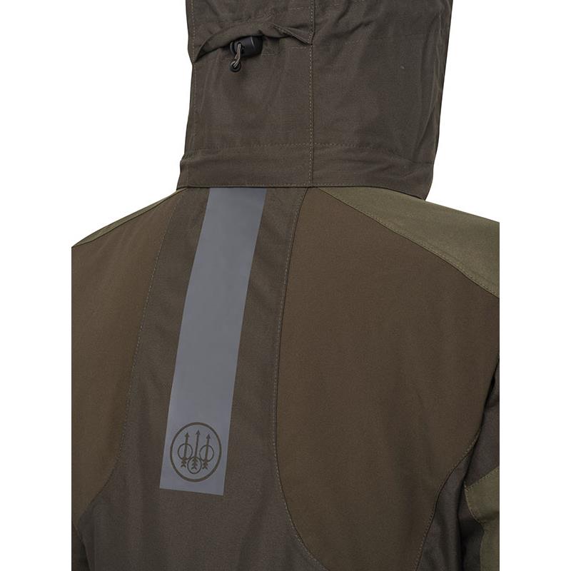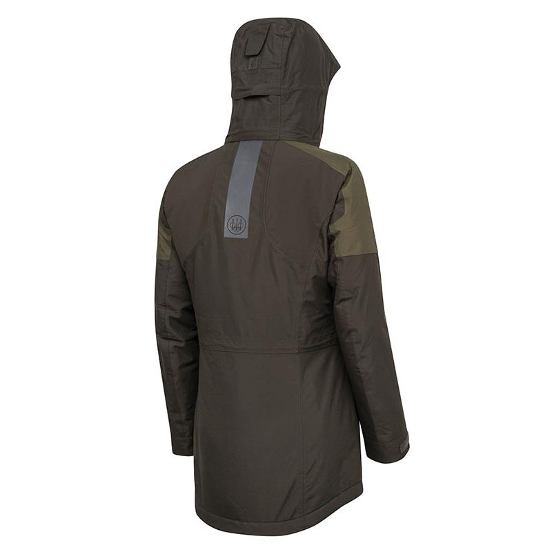 Features : • Removable hood, pre-shaped « Easy Movement » so as not to obstruct the field of vision • Soft microfleece inner collar • YKK zipper and snap buttons under flap • Hand-warmer pockets with a waist adjustment cord and extra-strong closure to lock the pocket flap • Velcro on the cuffs. Elastic inserts at the shoulder blade area • Adjustment cord • Removable « Beretta Hands Free » straps • Internal pocket with YKK zipper • Rubberized Beretta logo on the left sleeve • Cut : straight