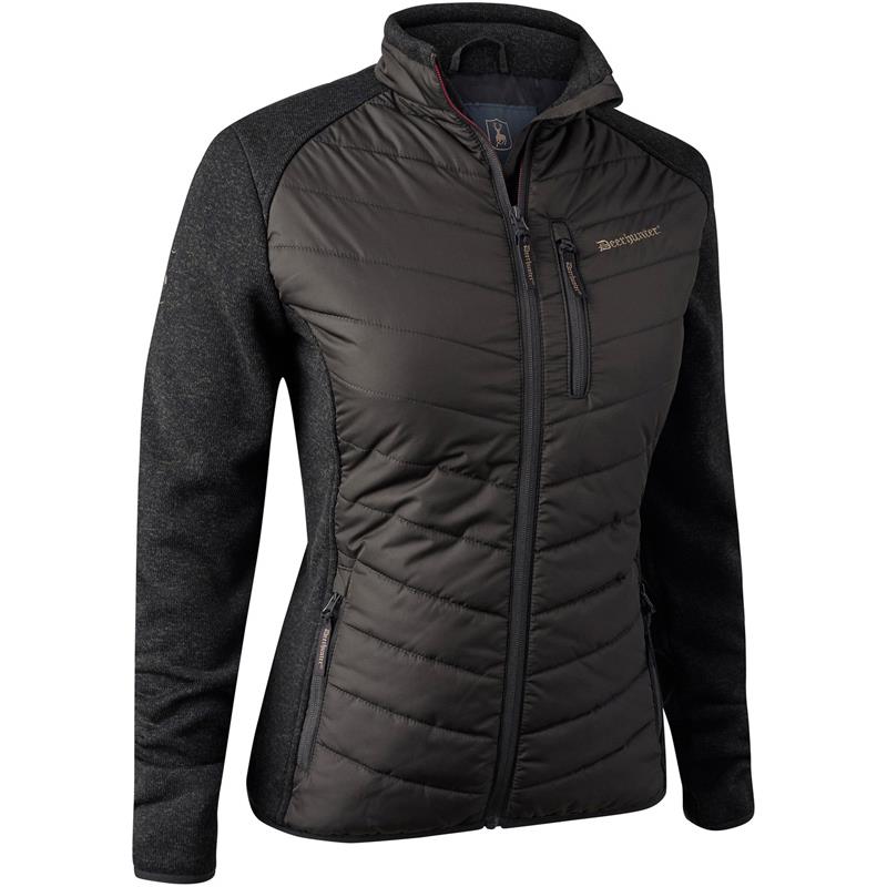 Features : • Jacket with knit at the shoulders, on the sleeves and on the sides • 3 pockets on the front with zip closures • Elastic trim at the wrist and hem • Garment fabric: 100% Polyester • Treatment: Water-repellent, Anti-static • Contrast: 100% Polyester Knit • Insulation: Deer-Tex Temp 160 g/m²