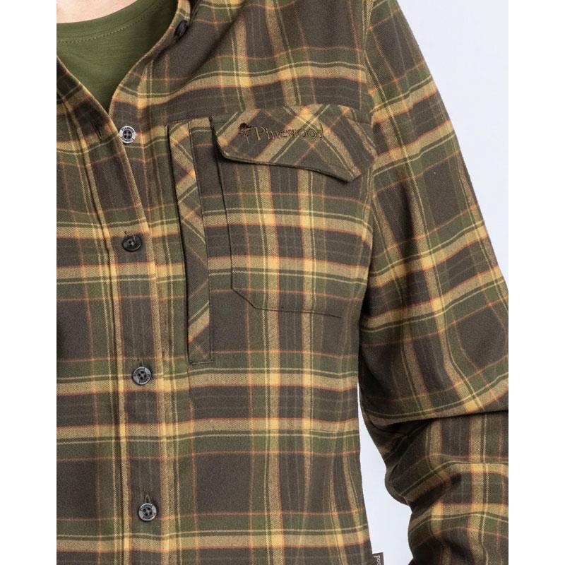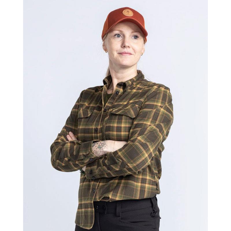 The Abisko hiking shirt for women in soft flannel is stretchy, soft and highly breathable. Made from recycled polyester, it contains CoolMax® fibres that wick away moisture and dry quickly. If you sweat or get wet, the material wicks away the moisture to the surface of the garment, allowing you to stay warm even in physically demanding conditions. The shirt features multiple handy pockets, including two self-fastening chest pockets and a zipped chest pocket, ideal for storing your map during the hike. Inside the right waistband, an integrated cloth allows you to easily clean your glasses or sunglasses.