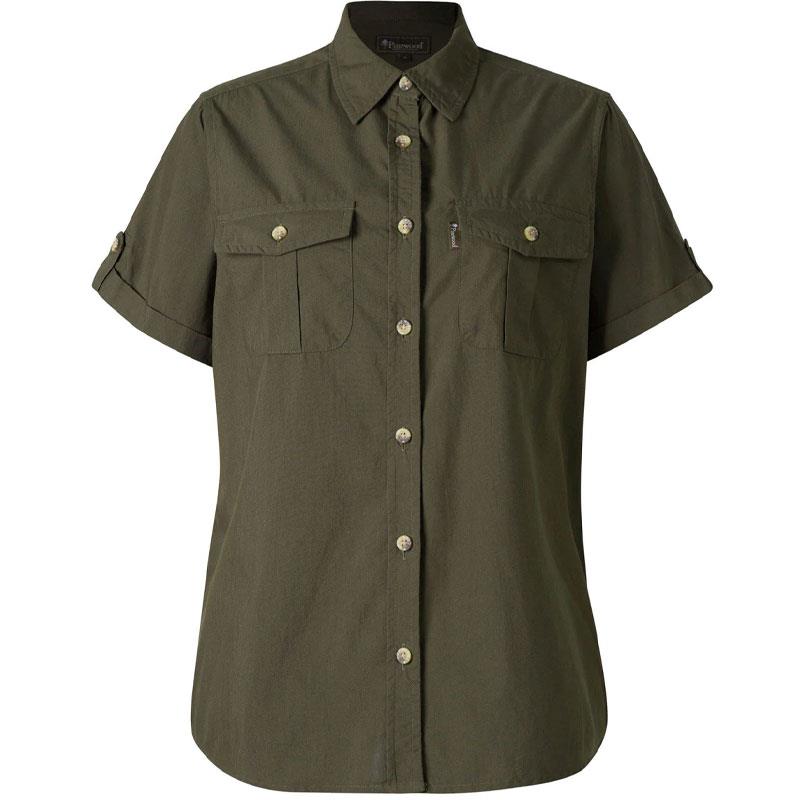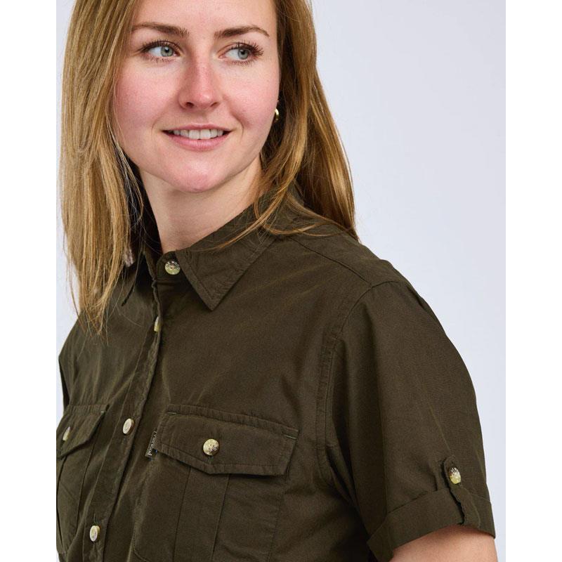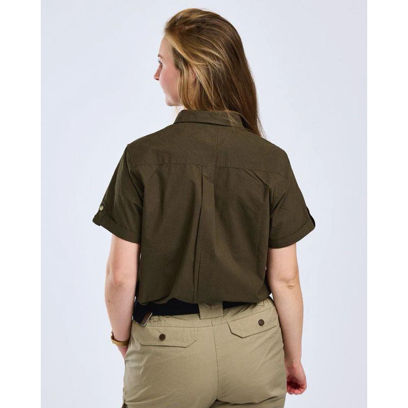 The short-sleeved women's Safari shirt is made from a pre-washed fabric for added softness and breathability, keeping you cool in warm weather. Its stylish design features two practical buttoned chest pockets. With its durable quality and feminine cut, this shirt will become a staple in your wardrobe, perfect for work and outdoor adventures, at home and abroad.