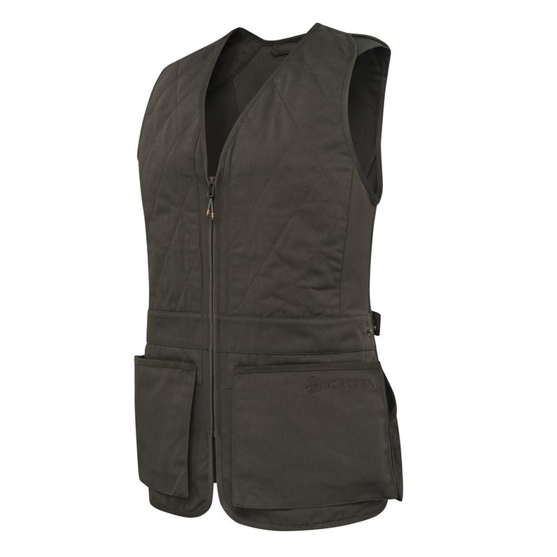 Shooting vest for women Teal Sporting EVO W lightweight and enveloping thanks to the gabardine fabric made of cotton and polyester. Ambidextrous padded cotton shoulder band. The cotton shoulder band allows for perfect shouldering. The elastic inserts on the hips optimize the fit of the vest. The waist adjustment ensures maximum ergonomics. Front cartridge holder pockets. Large personalization space on the back entirely in cotton.