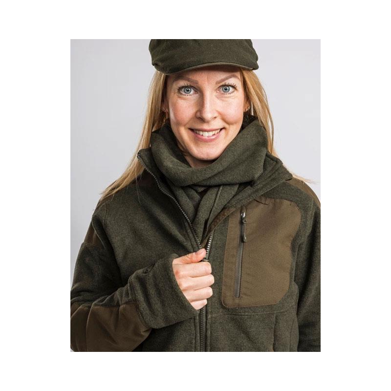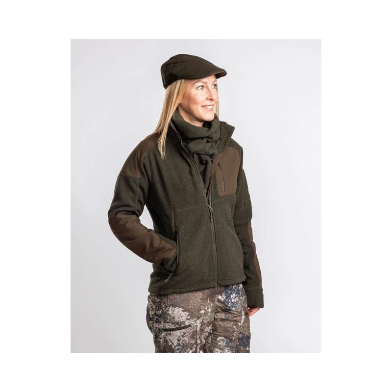 Ecological hunting fleece in recycled polyester dyed with the e.dye® solution - a waterless dyeing system. It contains 240 g of anti-pilling fleece specially formulated to resist pilling. Reinforced areas on the shoulders, elbows and chest. The fleece has two hand pockets with zip closures and a radio pocket with reinforced antenna opening so that the radio can also be attached to the outside of the jacket.