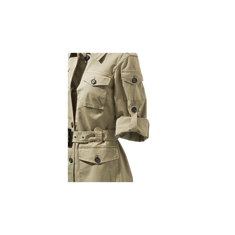 Safari jacket in dyed cotton. The elegant, fitted design of this jacket gives you the opportunity to wear a garment with an authentic style that evokes adventures of yesteryear. The fastening elements of the roll-up sleeve buttons ensure your comfort whatever the weather and the central gusset enhances the flexibility of your movements.