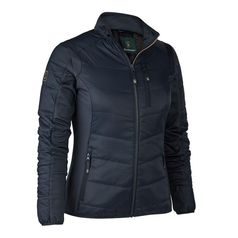 Combining the best in innovation regarding materials, functional design, and textile technology, the Lady Heat Deerhunter quilted jacket offers optimal comfort and warmth to the hunter when they need it most. Providing comfort in cold weather at the push of a button, it is part of Deerhunter's high-tech Heat range, equipped with an integrated intelligent heating system that is activated by an easy access ON/OFF button in the chest pocket, with an adjustable heat intensity indicated by the integrated LED indicator. For practical reasons, the portable charger can be easily removed for machine washing. Insulated, with quilted panels at the front, back and sleeves, with a two-way stretch fabric for more flexibility, it is perfect for hunting conditions, whether in cold or pleasant weather.