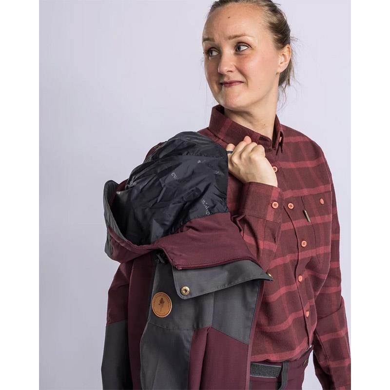 Windproof and waterproof jacket made from stretchy TC waxed material. Equipped with a high collar and stretch components in 4 directions for increased durability. Lined with High-ventilation™ mesh and fitted with ventilation openings on the sides for excellent breathability. Fixed and adjustable hood with brim. Sealed seams and water repellent zipper. Waterproof chest pocket with zipper. Adjustable hem. Adjustable cuffs with grip closure. Feminine fit.