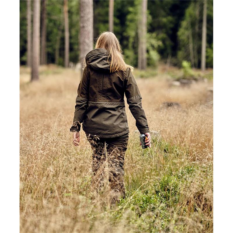 The Furudal tracking jacket is a windproof hunting jacket with a feminine cut, lightweight and highly breathable for spring hunting. Elbow and lower reinforcements with membrane. Adjustable and removable hood. Radio pockets on both sides. Adjustable bottom. Mesh lining for ventilation, better breathability and less condensation.