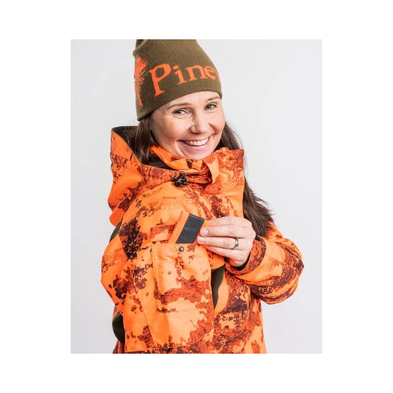 Features : • Windproof • Waterproof • Durable • Breathable • Sealed seams • Side ventilation zippers • Women's fit • Game bag pocket • Removable hood • Adjustable waist • Adjustable cuffs with hook-and-loop • Radio pocket • Eco treatment: Bionic Finish® Eco - fluorocarbon-free impregnation - for additional water-repellent properties • Official True Timber® camo • Four-way stretch panels • GPS pocket • Pocket with integrated safety strip • Pockets with zippers • Two-way zipper • Removable suspenders • High-visibility orange collar