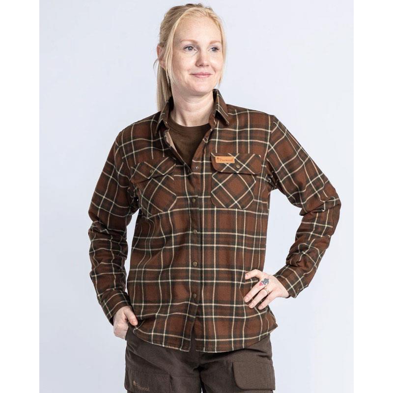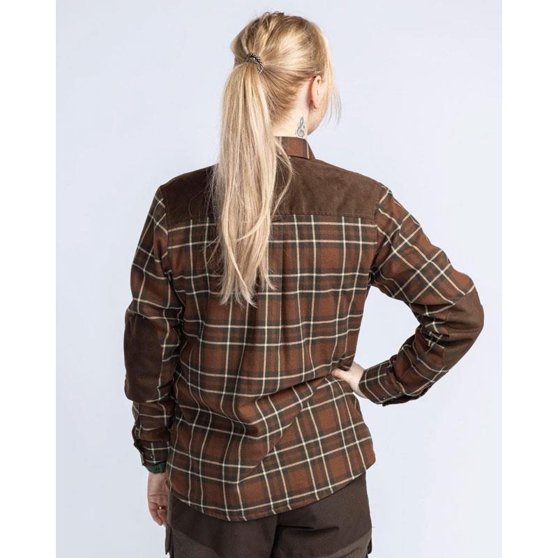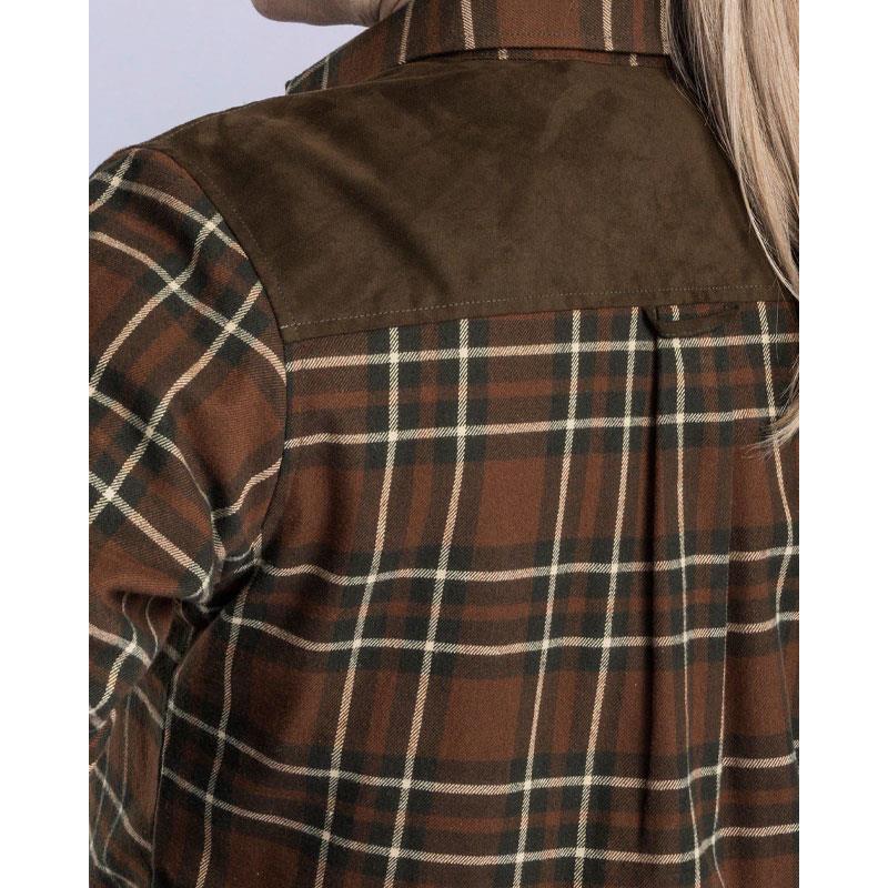 Women's soft flannel shirt with windbreaker and water-repellent membrane. Nice synthetic suede leather details on the shoulders and elbows. Practical snap buttons. Adjustable cuffs. Without sealed seams.