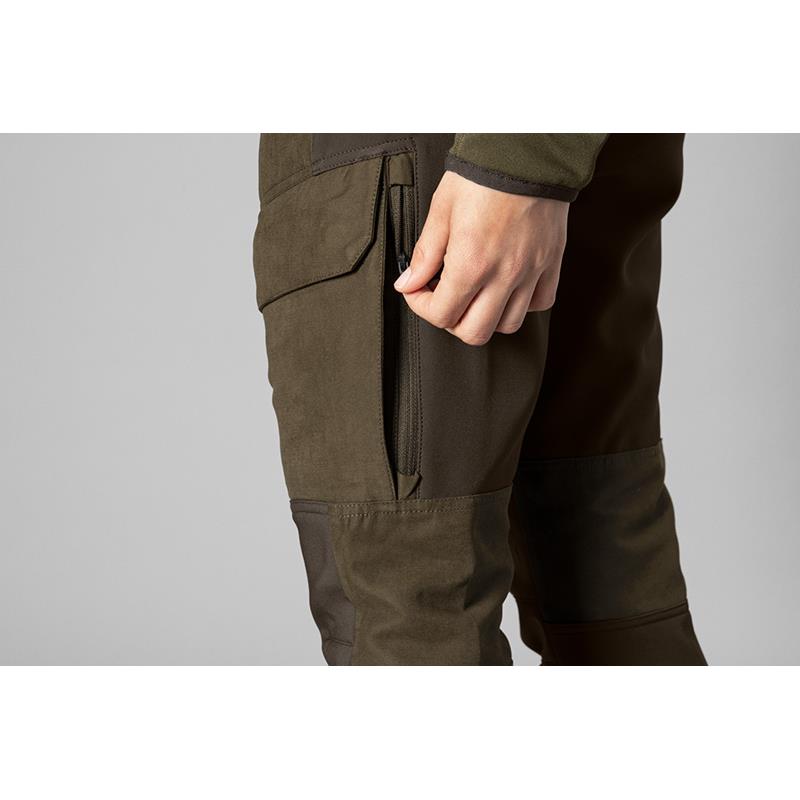 The Scandinavian trousers for women are an elegant adaptation of the popular men's style, redesigned to fit the female form. Made from a durable blend of cotton and polyester, these trousers offer an active fit with an elastic waistband and stretch panels. They feature ventilation zips, spacious thigh pockets with magnetic closures, and a light fleece lining for added comfort and functionality outdoors.