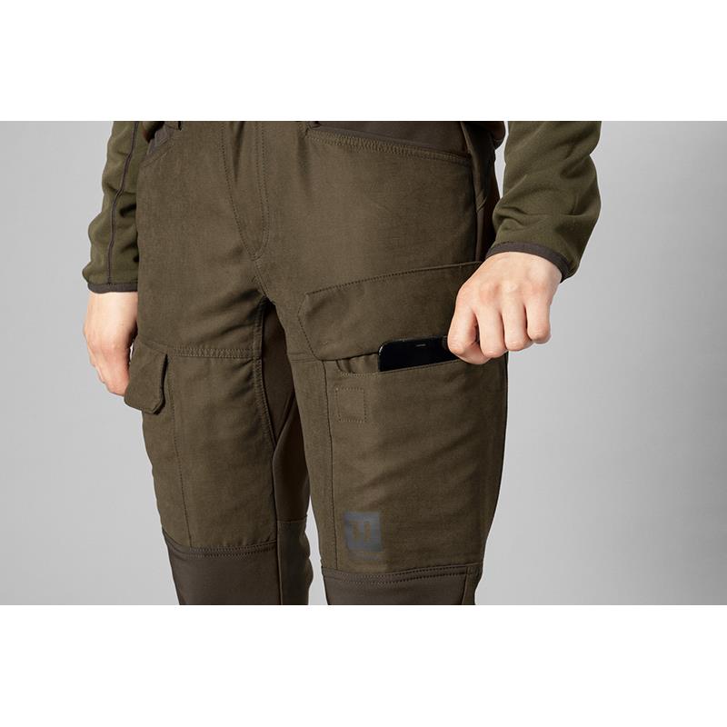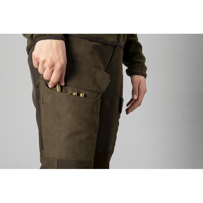 Features: • Elastic waistband with jeans button closure. • Easy access top pockets. • Large thigh pockets with flap and magnetic closure. • Cartridge holder inside right thigh pocket. • Mobile phone pocket inside left thigh pocket. • Ventilation zips behind thigh pockets.