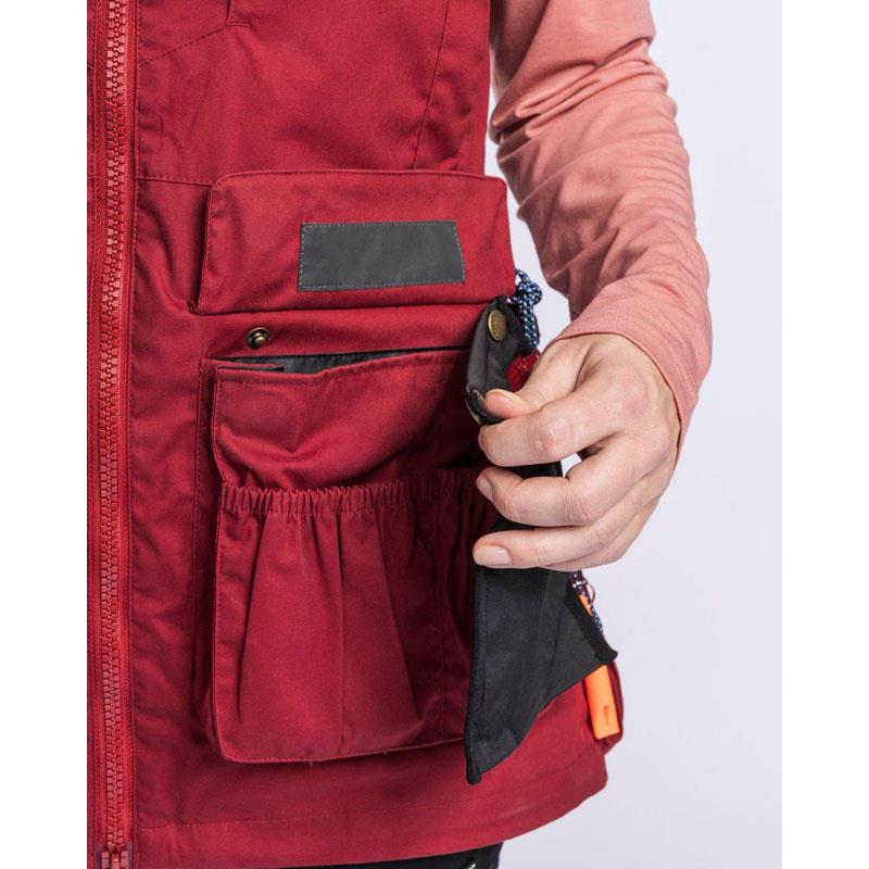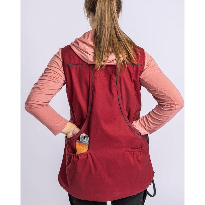 The vest also has fleece-lined hand warmer pockets, two inner zipped pockets, a mobile phone pocket and two zipped chest pockets. It closes easily with a double-sided zip and can be adjusted at the back and bottom with a hidden drawstring. At the waist, a D-ring and a sturdy carabiner allow to attach a leash or a similar accessory.