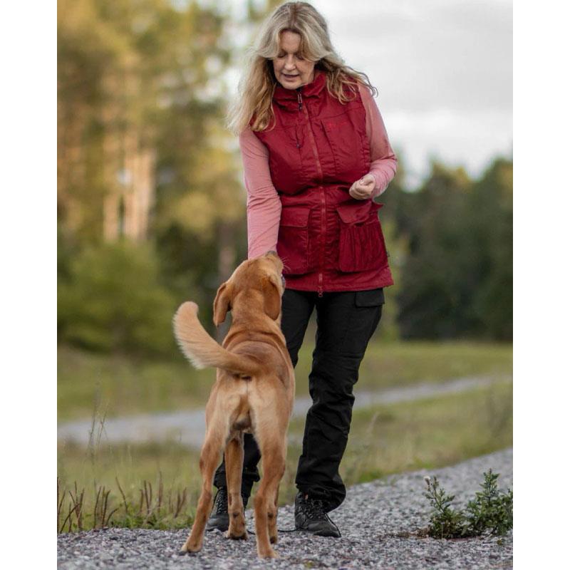 This women's training vest is our most equipped model to date, making it the ideal choice for those who want to be well prepared for a day of activities with their dog. Windproof and water repellent, it features a waxed surface resistant to light rain. Its stretchy side panels provide comfort and flexibility, for optimum freedom of movement. Reflective elements ensure optimal visibility during outings with your dog in the dark.