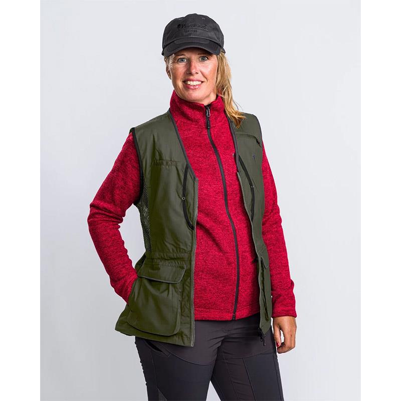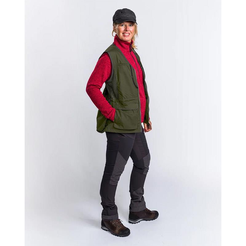 This Dog Sports vest has many functional pockets. Feminine cut. High ventilation mesh for more comfort. Sealed seams. Adjustable waist and bottom. Reflective details. Made from durable Pinewoods TC-Lite fabric.