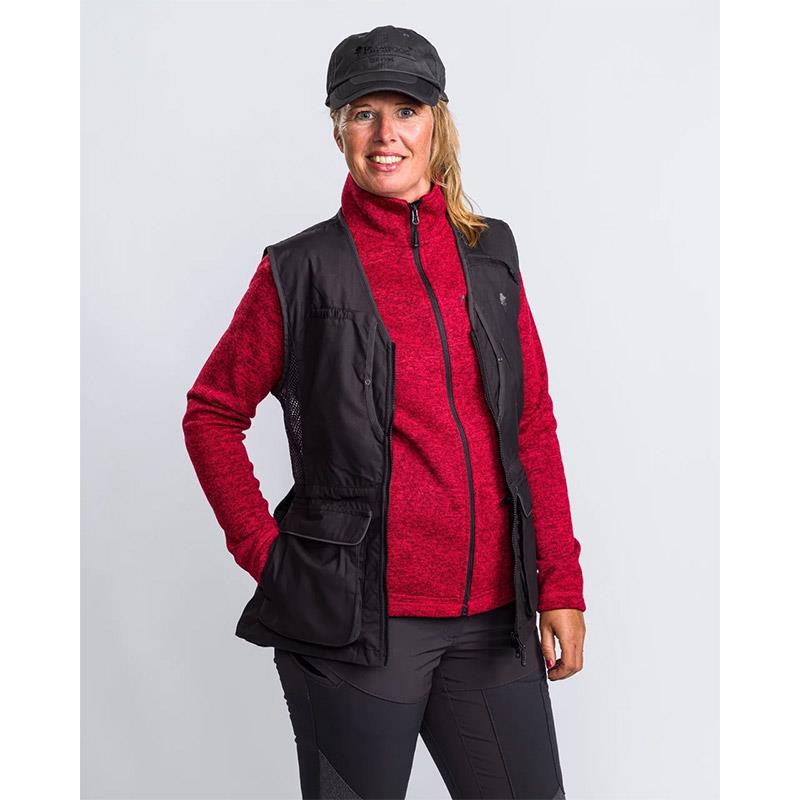 This Dog Sports vest has many functional pockets. Feminine cut. High-ventilation mesh for more comfort. Sealed seams. Adjustable waist and bottom. Reflective details. Made from durable Pinewoods TC-Lite fabric.