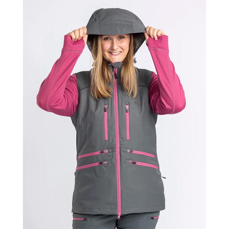 Features : • Double-way zipper closure • Windproof and waterproof coating • High-Ventilation™ mesh lining for great breathability • No sealed seams • Removable and adjustable hood • Feminine cut • Pocket with rubber opening for dog bags • D-ring in the hand pocket • Adjustable back, bottom and hood • The outer fabric is treated with an organic impregnation-Bionic Finish® Eco for added water-repellent properties. • Materials: 100 % polyamide, Lining: 100 % polyester, Lining 2: 100 % polyamide, Coating: 100 % PU • Weight: 700 grams (size M)