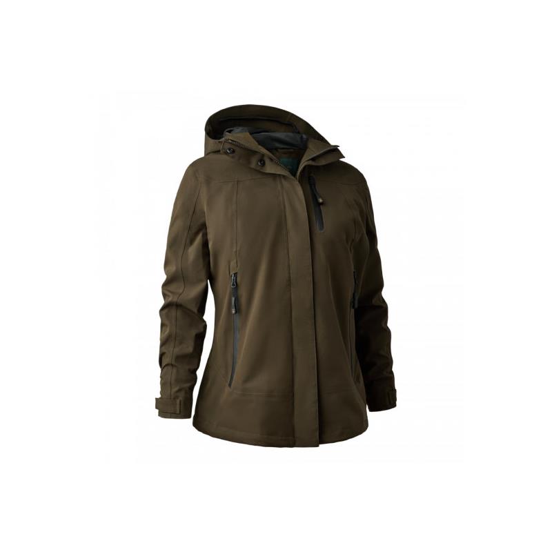 Waterproof, breathable and windproof, the highly functional Lady Sarek Deerhunter jacket with hood is designed to protect and for supreme outdoor comfort. Featuring a 4-way stretch fabric for maximum freedom of movement and a good fit, as well as the Deer-Tex® Performance Shell membrane for lightweight and 100% waterproof protection, this overcoat is also treated with a fluorocarbon-free water-repellent finish for total peace of mind.