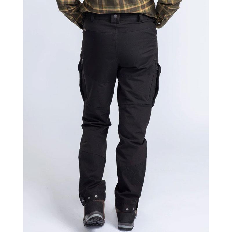 These trousers are equipped with multiple roomy pockets that can hold all the essentials for an active day outdoors with your dog. The practical bellows pockets on the legs have buttoned flaps and magnetic closures for quick access to treats and toys. A D-ring in the belt loop allows for easy equipment attachment. The leg bottoms are adjustable by zip and button closures to fit different types of shoes and protect against moisture. A boot hook keeps the trousers in place. This model is available up to size 50.