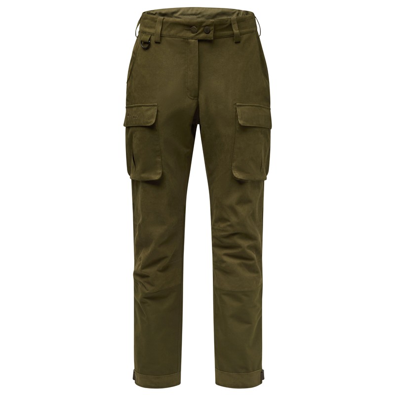 Women's hunting trousers, windproof and waterproof, suitable for both active hunting and watchtower hunting. They feature stretch fabric at the seat for added comfort and several functional pockets, including side bellows pockets with magnetic flaps and built-in ammunition carriers. This versatile women's hunting trousers are made from a 2-layer laminated fabric with a windproof and waterproof membrane, and sealed seams. It benefits from a PFC-free water-repellent treatment, offering excellent protection whatever the weather conditions.