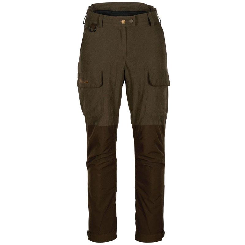 The women's hunting trousers from the Småland Hunters collection feature a windproof and waterproof membrane that effectively resists the elements. They are reinforced with ultra-durable Oxford fabric to limit wear in exposed areas such as the buttocks and knees. Taped seams enhance waterproofing and durability.