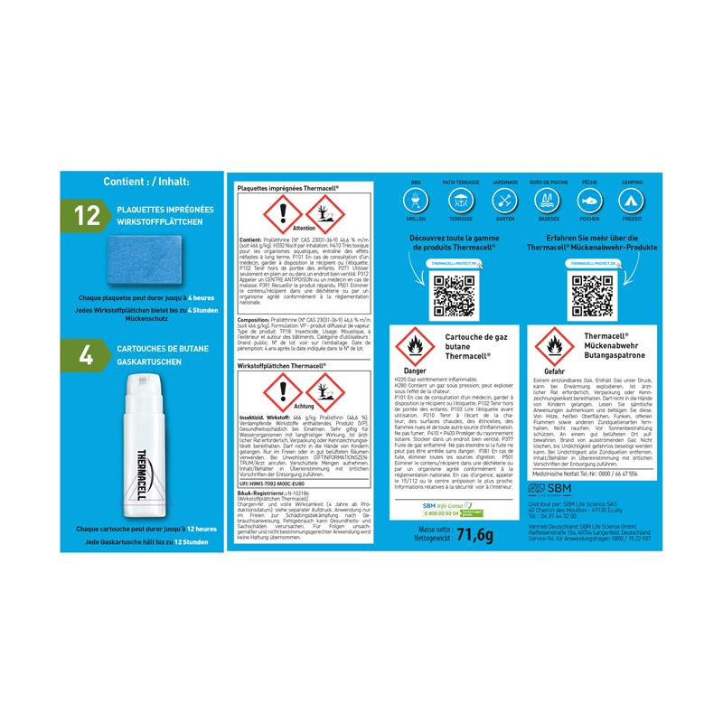 Mosquito diffusion system using pads, highly effective. The Thermacell® Anti-Mosquito refill provides complete protection after start-up, against the main types of mosquitoes, up to a 20 m² protection area. Refills for all Thermacell® products: Lantern, Shield.