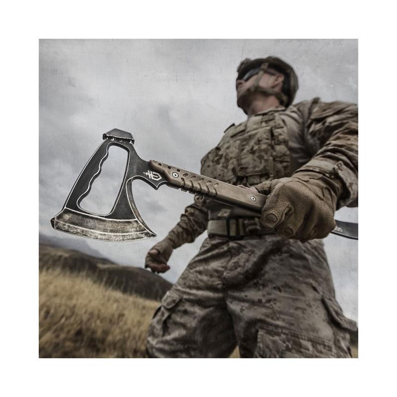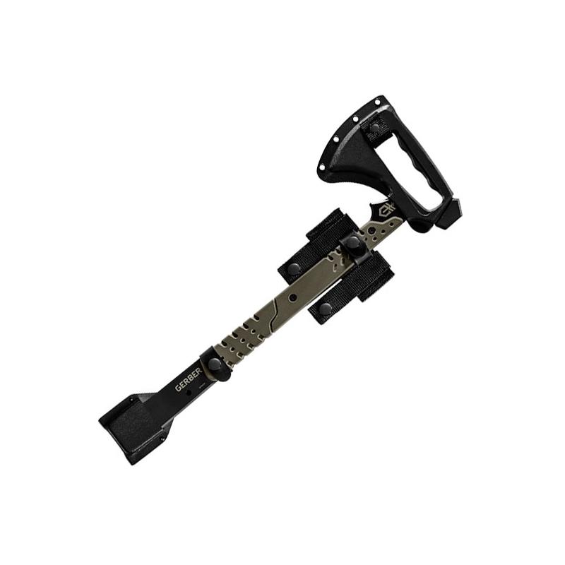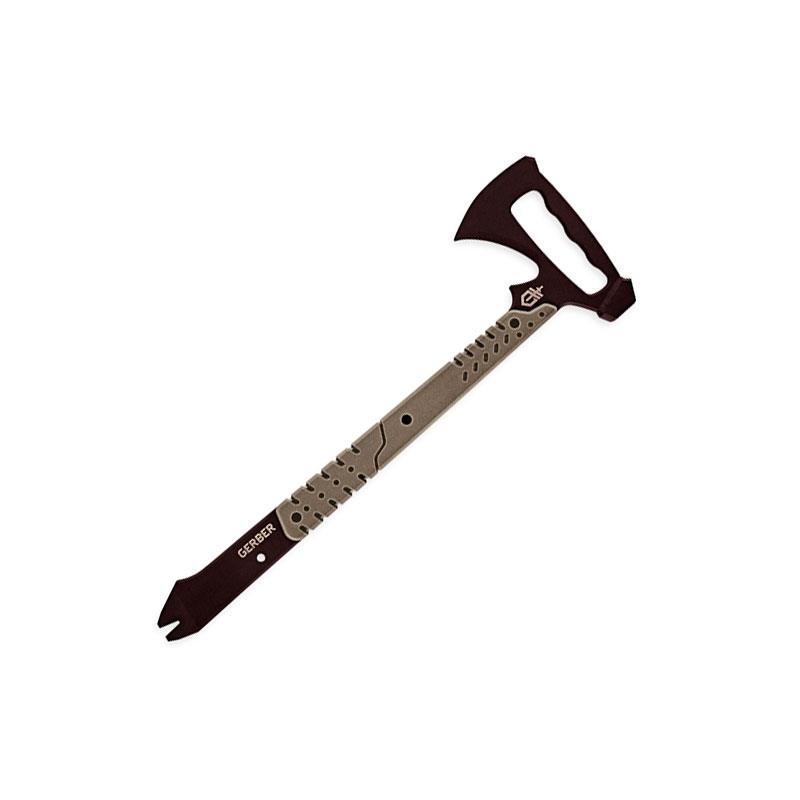 Features: • Gerber unique design axe head with unobtrusive handle • Hammer head • Lever bar • Desert Tan G-10 scales on the handle • 420HC steel body with Cerakote™ • MOLLE compatible sheath • Built in Portland, Oregon • Lifetime limited warranty