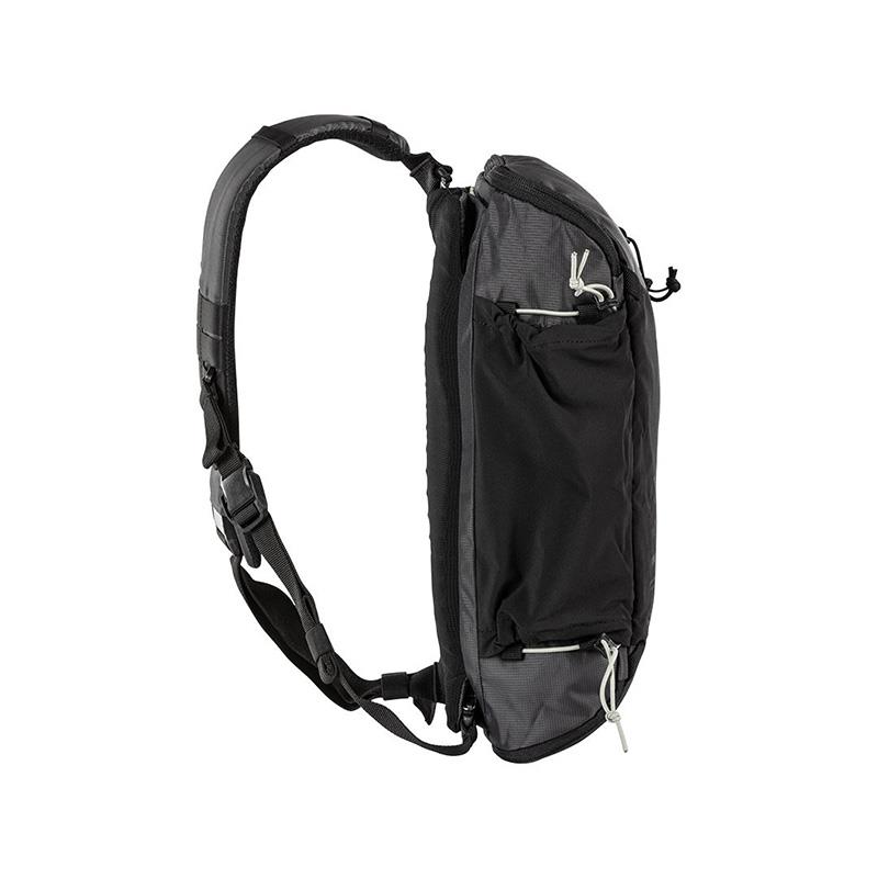 Features: • Sling bag • Total capacity of 10 liters • Simple, removable, and ambidextrous shoulder strap with a quick release buckle • Sternum strap and cross strap • Ambidextrous external water bottle pocket with drawstring • Zipped front external pocket for accessories • Access to main compartment by the top and sides • Internal zipped mesh pocket • External attachment loops for gear • Top and side carry handles • Laser cut MOLLE • Compatible with hydration systems (most 2L reservoirs) • Padded back panel with an air circulation channel • Clear interior for night visibility • Modular back panel that allows the addition of the Skyweight Hip Belt for the lumbar bag (sold separately) • Dimensions: 17.8 x 43.2 x 12.7 cm • Weight: 0.7 kg