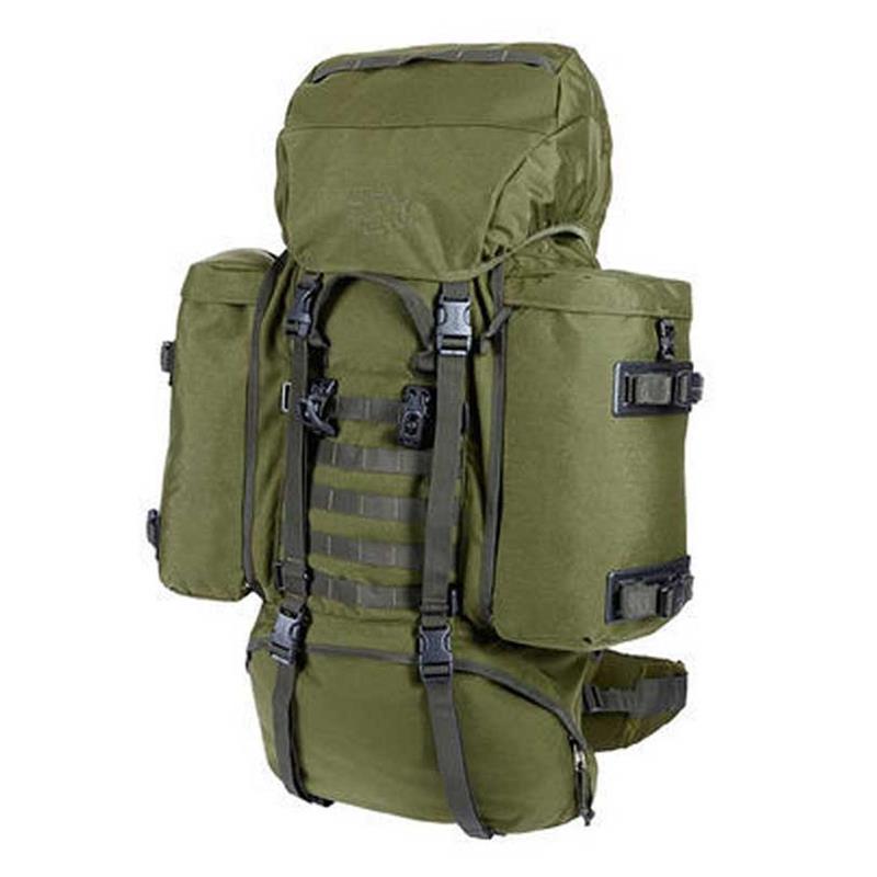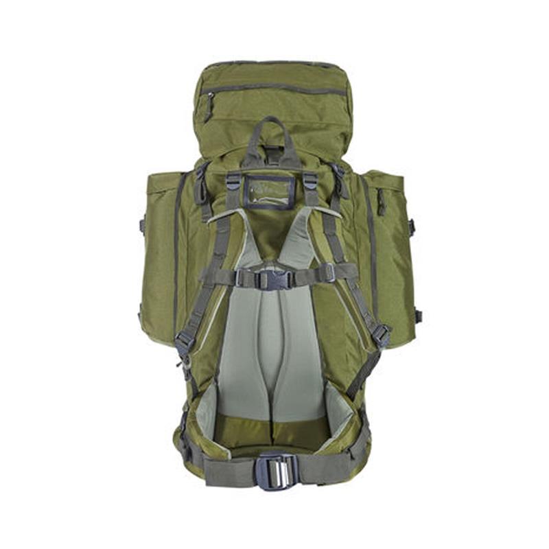 Features: • Carry system in Alu Cyclop II (excellent weight distribution) • The 2 removable MMPS side pockets (capacity 10 L) form a small backpack (straps included) • ADVENT back (Does not fade, rot-proof, anti-mold & water-repellent) • Zippered compartment for sleeping bag at the bottom of the bag • 6 external attachment points • Front and back carrying handle • Wide lower back belt • Zippered compartment at the bottom of the bag (sleeping bag) • In Nylon Cordura® 1000 D • Approximate dimensions: 88 x 57 x 33cm • Weight: approx. 2950 grams • Color: Olive Green (Cedar green)