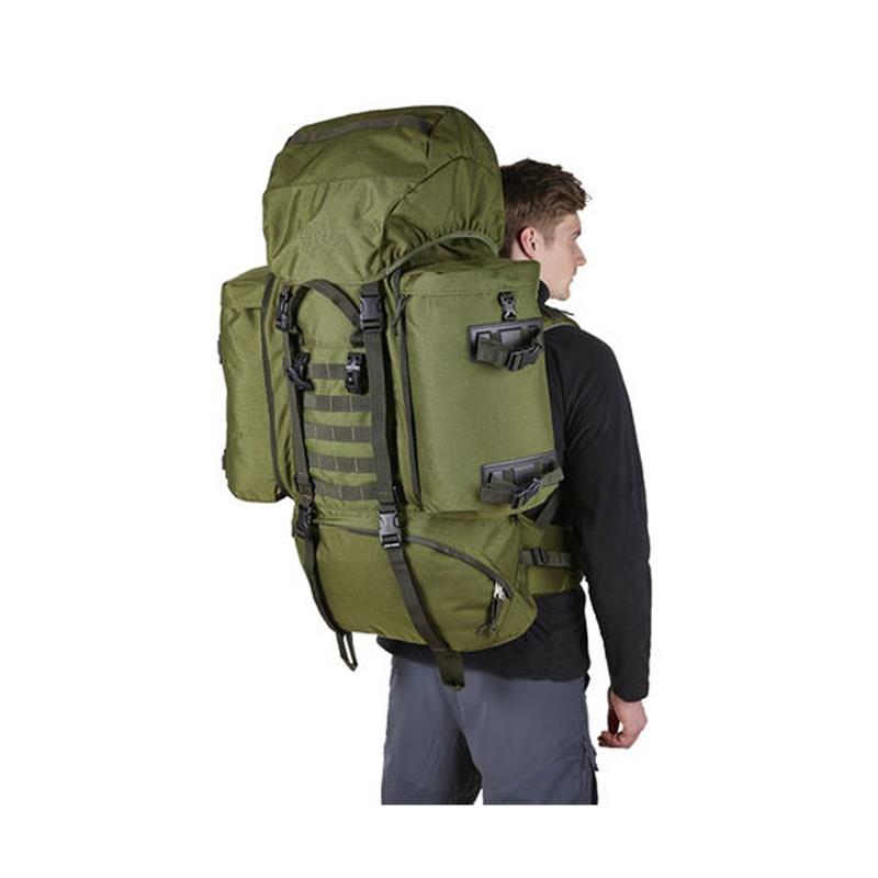 Military backpack with a capacity of 110 Liters. The 2 removable side pockets of 10 liters can form a shoulder bag.