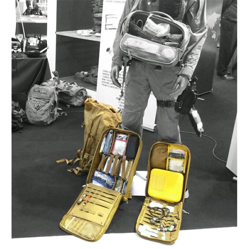 Medical intervention bag developed based on a patrol bag. Comes with 2 medical inserts (60%-40% medical or other volume) Main compartment opened for easy access to "non-medical". Medical front & side pockets accessories.