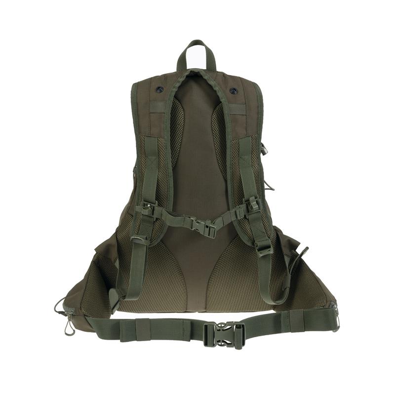 Waterproof 500D fabric, lightweight and sturdy. Perfect for woodcock, partridge, and quail hunting with a dog or for any other outdoor activity such as speed walking. Compact capacity with a large opening and a compartment for a hydration pocket. Its wraparound shape provides stability. Zippered front pocket and two zippered side compartments. Elastic straps for extra load. Padded back in breathable foam. Adjustable straps and belts. Removable rain cover in the zippered pocket at the base.